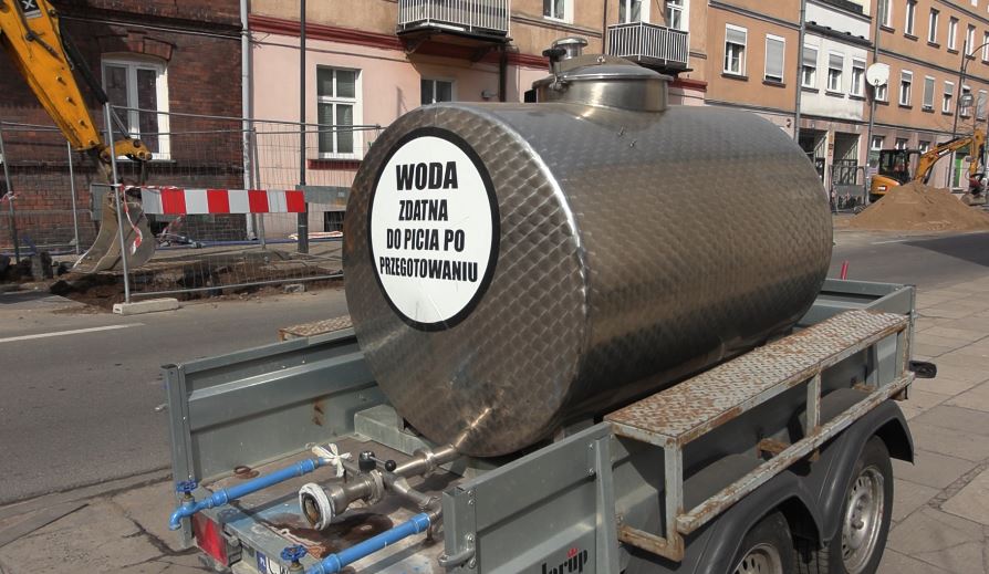 Dziś pobrane zostały próbki wody, która zostanie przebadana w Laboratorium MPWiK. Wstępne wyniki będą jutro. W rejonie awarii zostały ustawione punkty poboru wody zdatnej do spożycia.