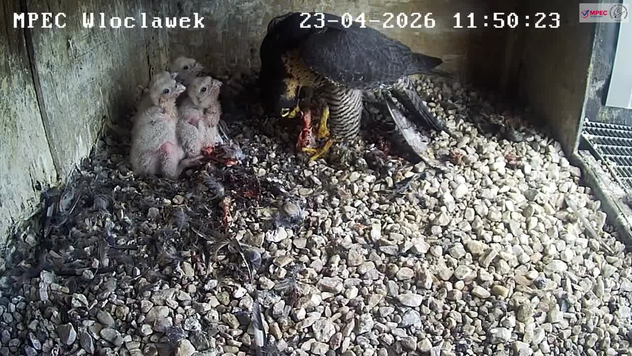 Rozwój wyklutych we Włocławku ptaków można oglądać za pośrednictwem dwóch kamer MPEC – jedna jest zamontowana jest w gnieździe, natomiast druga na zewnątrz. Relacja jest dostępna na stronie peregrinus.pl. Widać, że rodzice z troską opiekują się pisklętami. Nie wiadomo jeszcze jak zostaną nazwane młode sokoły.